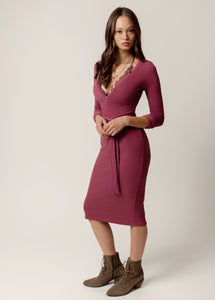 This elegant dress features a low V-shaped neckline that adds a touch of modern sophistication. Real shell buttons down the front give it a natural, elevated detail that feels truly boutique. A detachable belt with thread belt loops on both side seams allows you to define the waist for a flattering silhouette. The double needle coverstitch on the hem ensures a clean, polished finish built to last. Perfect for both casual outings and dressier occasions, this versatile dress is a timeless addition to any women’s boutique collection.