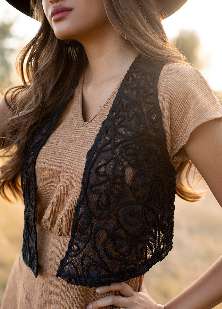 This lace vest will effortlessly elevate your wardrobe, expanding your layering options and enabling you to create stylish combinations with ease.