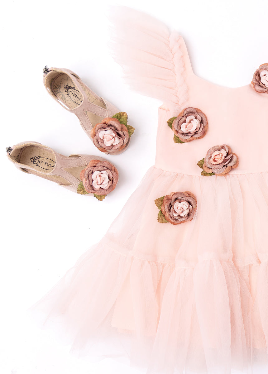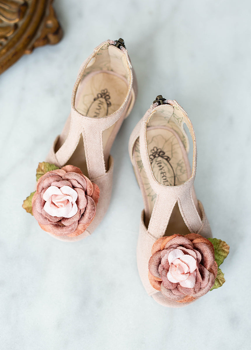 Complete her look with our Orelia Heel for your little one, featuring an intricately designed applique flower that adds a touch of charm and elegance. This stylish heel pairs perfectly with our Tianna Dress and Elide Dress, making it a versatile choice for any special occasion. Crafted for both comfort and style, this heel ensures your little girl stands out with grace and confidence.