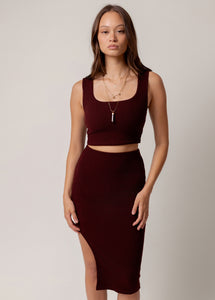 This stylish set includes a square-neckline top and matching skirt for a coordinated, modern look. The top is designed with two layers of fabric, clean finishes all around, and bust darts for a flattering fit. The skirt features a comfortable elastic waist and a sleek side slit that adds just the right amount of movement. Together, the pieces create an effortlessly chic silhouette that’s both versatile and feminine. Perfect for brunch, date nights, or summer getaways, this boutique set is a must-have addition to any women’s wardrobe.