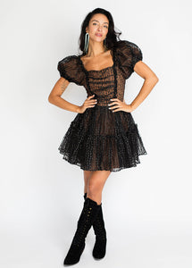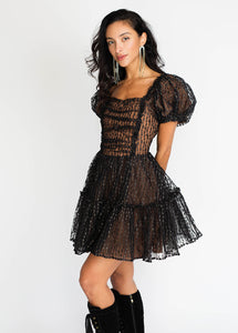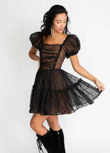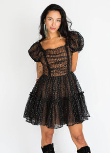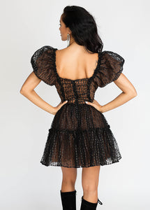 Embrace your playful side with our feminine Perla Dress. This charming short-length dress features a flattering empire waist and a delightful babydoll silhouette that twirls with every step. The puff sleeves add a romantic touch, while the subtle sparkle detail ensures you shine wherever you go. With a lined bodice and skirt for comfort and an invisible zipper at the center back for a seamless finish, this dress is perfect for any occasion, from brunch to evening outings. Capture hearts and turn heads in this enchanting piece!