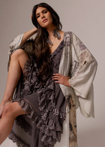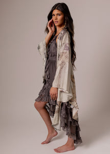 The Pixie Duster adds instant elegance with its open-front design and soft, effortless drape. The wide front panels narrow toward the bottom, creating a beautiful curved hem that moves gracefully with every step. Batwing sleeves are cut seamlessly into the main body, giving the silhouette a relaxed, fluid shape. When your arms are lowered, the sleeves cascade gently for a chic, cape-like effect that feels both modern and romantic. Perfect for layering over dresses, tanks, or denim, this duster brings easy sophistication to any boutique wardrobe.