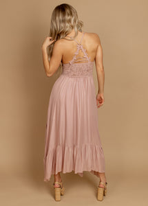 Turn heads with our midi-length dress, inspired by our beloved Poesy Bralette for a flattering, feminine fit. Featuring a breezy flowy skirt and a delicate ruffle hem, this dress is perfect for any occasion. The T-back design, adjustable stretchy straps, and removable padding ensure customizable comfort and support. A smocked back adds a touch of texture while providing a secure yet flexible fit. Effortlessly chic, this dress transitions beautifully from casual outings to special events.