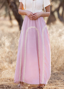 The Ravina Skirt is a captivating blend of vintage charm and modern grace. Featuring a flowing silhouette with intricate lace paneling, this skirt exudes femininity and elegance. The soft, muted green hue adds a touch of earthy sophistication, while the delicate lace inserts create a romantic, ethereal effect. You can play with the embroidery pattern and get different looks. Perfect for pairing with a cropped blouse or a tucked-in top, the Ravina Skirt is ideal for garden parties, festivals, or casual-chic outings. Embrace timeless style with this beautifully detailed, free-spirited piece.