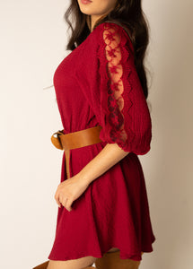 - Lace insert on sleeves