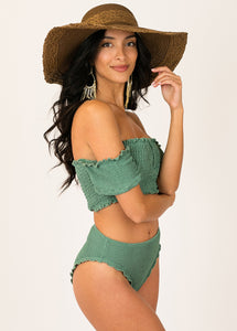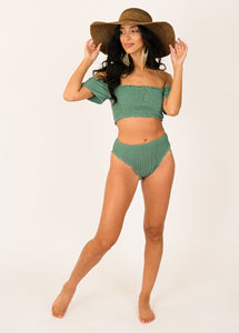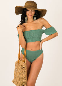 Easily throw on your favorite bottoms to go from beach to brunch in this two-piece fashion swim set.
