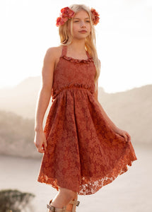 Elevate her wardrobe with the Sonyah Dress—a timeless piece that offers both comfort and elegance. Featuring a sweetheart ruffle neckline, elastic back bodice, and a playful irregular hem, it’s perfect for twirling on any occasion.
