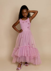 Add a touch of whimsy to her wardrobe with our charming high-low maxi dress, designed for both comfort and style. The delicate sweetheart neckline pairs beautifully with thick straps and a flattering square backline for a timeless look. A playful petticoat skirt with ruffle gives the dress a fun, voluminous silhouette, while the organza sparrow appliques add a unique and feminine detail. The invisible back zipper ensures a seamless fit, and the dress is fully lined for extra comfort and coverage. Perfect for any special occasion, this dress combines elegance and charm in one stunning piece.