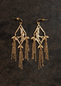 Add a touch of elegance with the Sparrow Earrings, featuring delicate matte gold bird pendants and cascading chains. Perfect for elevating any look with a blend of nature-inspired charm and sophisticated design.