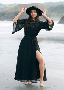 The Sunni Dress in Black is a versatile and effortless choice for any occasion, making it a staple in your wardrobe. Its throw-on-and-go design is perfect for busy days, while the comfortable and flowy fit ensures you stay at ease all day long. The delicate lace detailing adds a touch of elegance, elevating this must-have maxi dress. Featuring a leg slit and a stylish V-back, it offers a flattering silhouette, complemented by dramatic bell sleeves. With a detachable waist tie and lined self for added comfort, the Sunni Dress is ready to take you from casual outings to special events with ease!