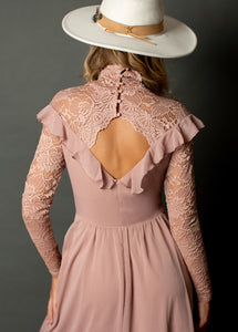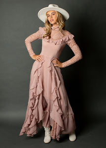 Inspired by the classic Cass Dress, this maxi combines sophistication with a touch of whimsy, featuring delicate ruffle princess seams that enhance your silhouette and add a playful charm to your look.