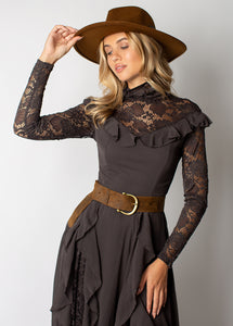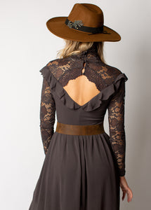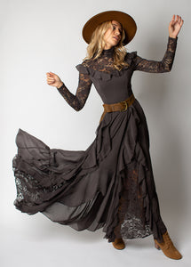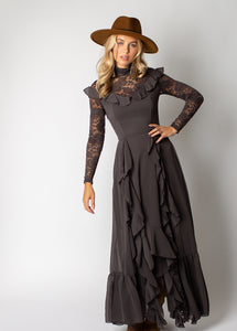 Inspired by the classic Cass Dress, this maxi combines sophistication with a touch of whimsy, featuring delicate ruffle princess seams that enhance your silhouette and add a playful charm to your look.