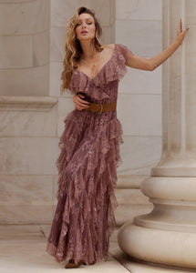 Embrace effortless elegance with our romantic boho maxi dress, featuring graceful vertical ruffles that flow and sway with every movement. The versatile design allows you to wear the sleeves on or off the shoulder, creating a chic look for any occasion. With a flattering V-neck and V-back tied detail, this dress accentuates the natural waist seam for a beautiful silhouette. Fully lined for comfort, the dress is perfect for summer gatherings or special events. Elevate your wardrobe with this stunning maxi dress, a must-have for any fashion-forward individual!