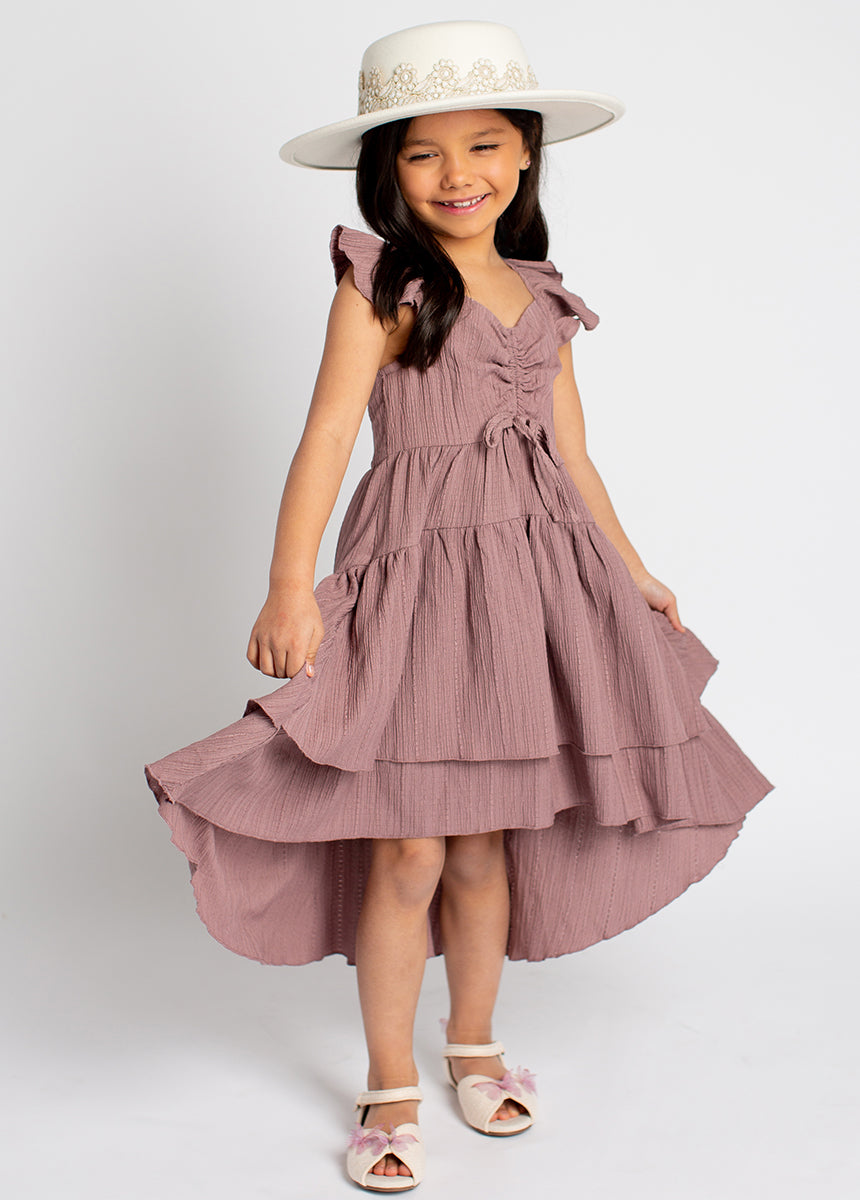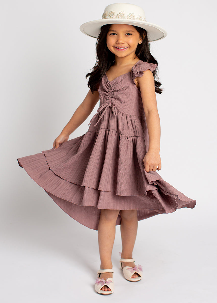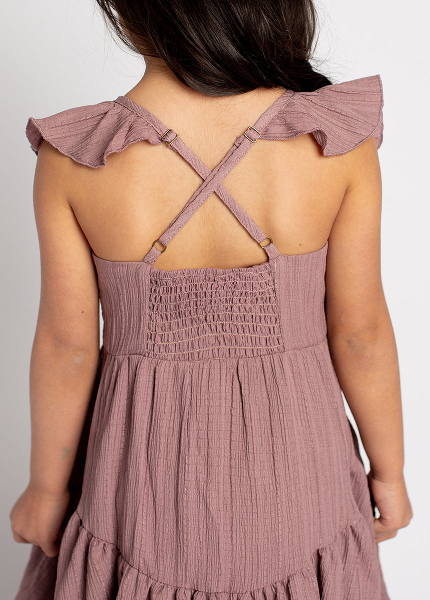 Up your style game with the Tara Dress in Lavender Dust! This delightful dress boasts front smocking, flutter sleeves and dainty ruffles for a playful yet elegant look. Lightweight and comfy, it's an ideal choice for any occasion.