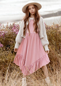 Introducing our Tatum Dress in Pink, the perfect blend of comfort and elegance for your little one. This feminine dress features playful bubble sleeves and a delicate lace collar, adding a charming touch to her look. The keyhole button closure at the center back ensures easy dressing, while the elastic waist provides a comfortable fit for all-day wear. Made from soft jersey knit fabric, this dress is both stylish and cozy, making it ideal for any occasion. Keep your child feeling and looking great with the Tatum Dress, a must-have addition to her wardrobe!