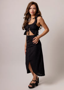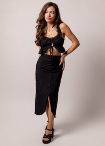 The Teeny Top is the perfect blend of sweet and stylish, designed as part of a matching top and panty set for a coordinated, boutique-ready look. The wide scoop V-neckline in both the front and back creates a soft, flattering shape, beautifully framed by full flounces finished with delicate 1/8" merrow-stitched edges. A tiny lingerie bow accents the center front, adding a charming touch to the romantic design. The front waist features an adjustable self-fabric tie inside a tunnel, letting you cinch the fit exactly how you like. The back waist is finished with stretchy zig-zag elastic stitching, giving you comfortable support while keeping the silhouette pretty and effortless.