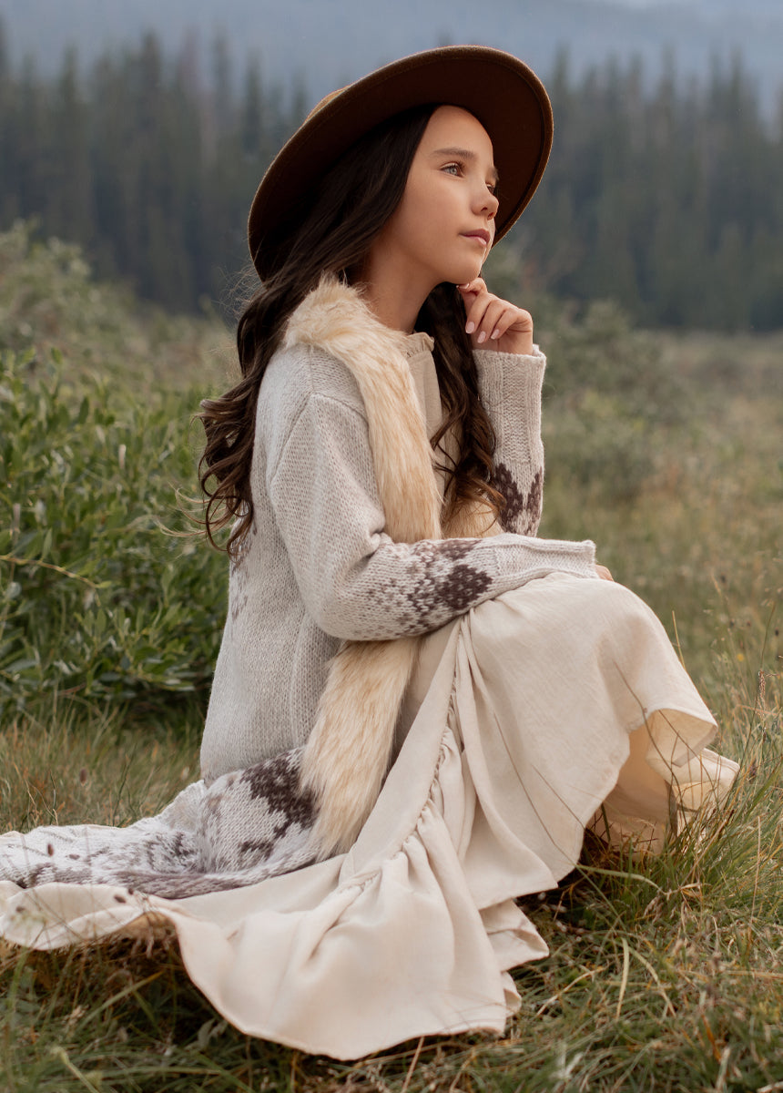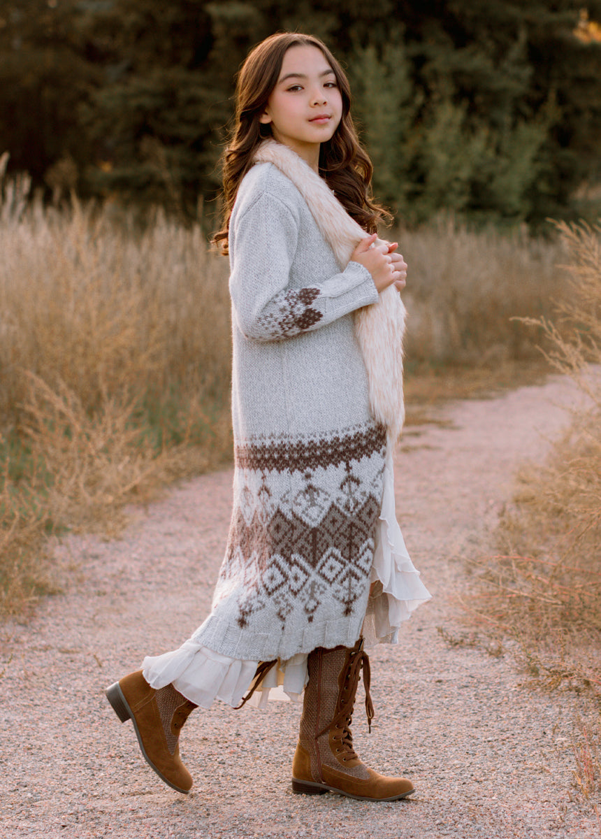A chic open front with faux fur adds a plush warmth to this ankle length cardigan.