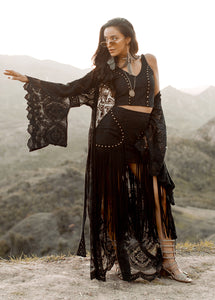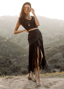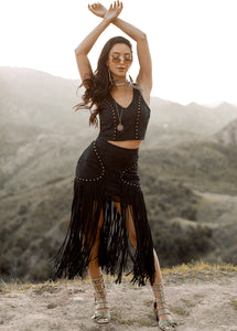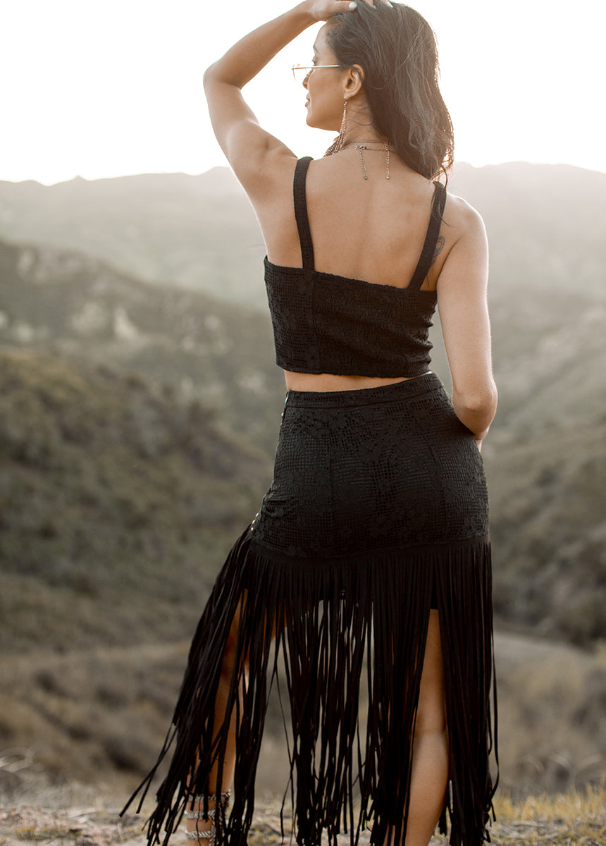 Introducing our Wey Set in Black - a chic and stylish addition to your wardrobe. This boho set features fringe detailing for a touch of texture, perfect for adding some fun to your outfit. Don't be afraid to stand out with this unique and playful ensemble.