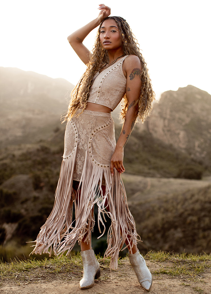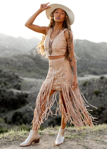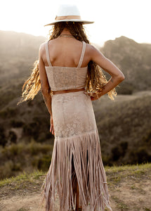Say hello to our Wey Set in Light Taupe - a groovy and trendy addition to your closet. This boho set boasts fringe accents for a pop of texture, ideal for spicing up your look. Don't be shy to make a statement with this one-of-a-kind and playful outfit.