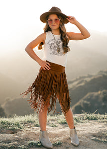 Sway into style with the Weylyn Skirt in Pecan! This playful piece comes with a boho western flair that'll have you twirling into a whole new level of cool. And don't forget the fringe - a fun and unique touch that adds a little extra oomph to your outfit!