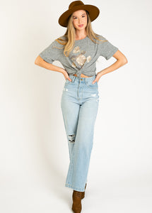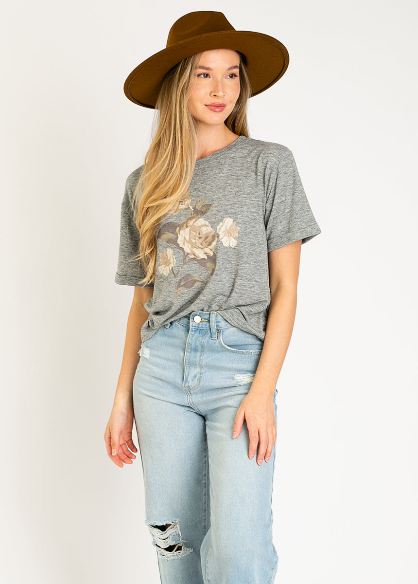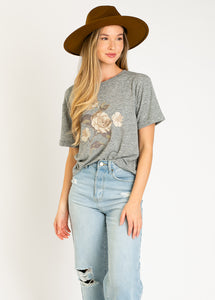 Women's Cream Rose Tee in Heather Gray