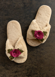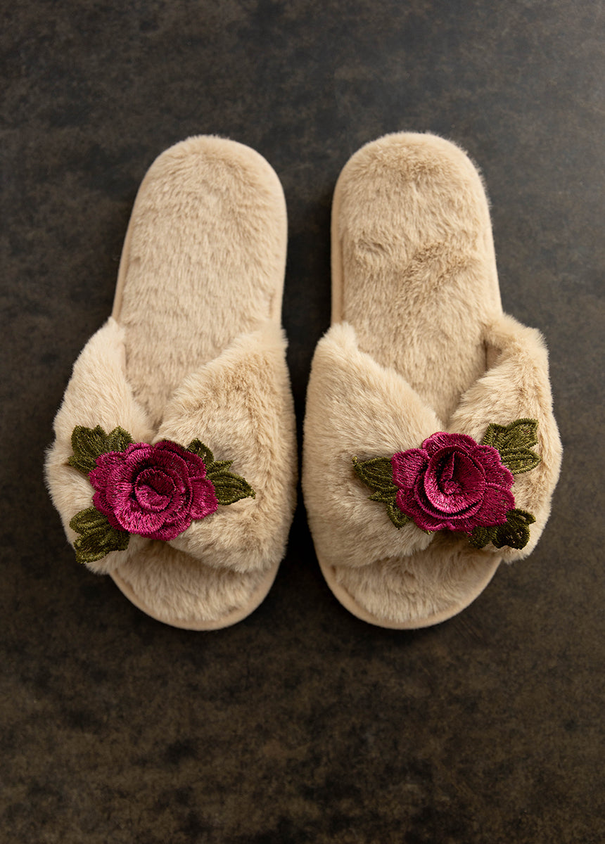 Keep your feet warm and stylish with these beautiful slippers featuring a delicate embroidered flower design. Crafted from ultra-soft fabric, they provide a plush and cozy feel for ultimate relaxation. The cushioned sole ensures excellent support, making them perfect for all-day wear around the house. With their easy slip-on design, these slippers are both practical and effortlessly chic. Elevate your loungewear collection with these must-have comfy slippers!