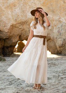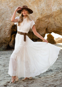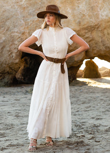 Embrace your inner boho with the Yani Dress in White! This multi-purpose dress can be worn fully fastened, partially fastened, or completely unfastened for a stylish duster look. Ideal for any event, the Yani Dress provides limitless options for your closet.