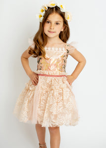 The color of this dress is lovely! I bought this for my granddaughter for her 7th birthday present. Her face lit up as soon as she held up the dress. Thank you Joyfolie for making this a wonderful birthday for her.