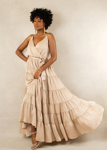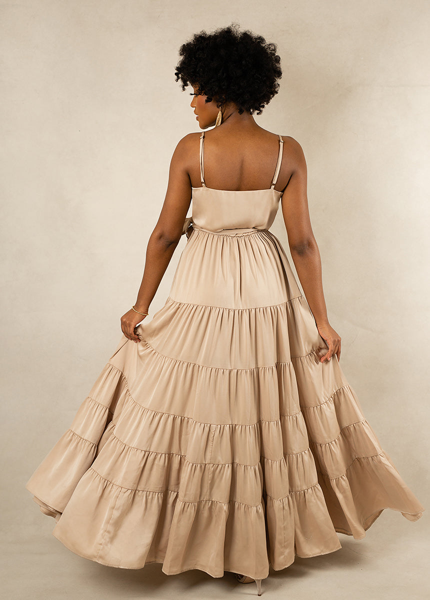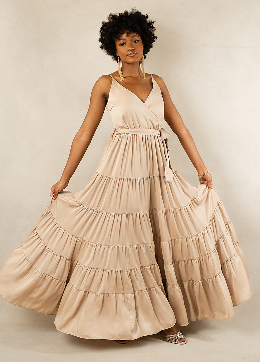 Looking for the perfect dress for your bridal party? Look no further than our stunning maxi length Zayla Dress with a wide sweeping, tiered skirt and a tie at the waist. This dress is both elegant and comfortable, making it the perfect choice for your bridesmaids. With its flowy and feminine silhouette, your bridesmaids will look and feel beautiful on your big day. The tie at the waist adds a touch of sophistication, making this dress a truly special choice for any wedding.