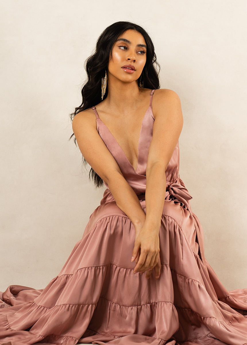 Looking for the perfect dress for your bridal party? Look no further than our stunning maxi length Zayla Dress with a wide sweeping, tiered skirt and a tie at the waist. This dress is both elegant and comfortable, making it the perfect choice for your bridesmaids. With its flowy and feminine silhouette, your bridesmaids will look and feel beautiful on your big day. The tie at the waist adds a touch of sophistication, making this dress a truly special choice for any wedding.