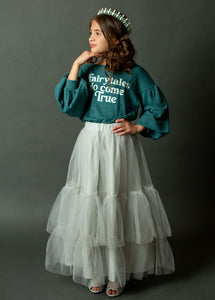 This full, maxi-length skirt is a delightful addition to her wardrobe, featuring tiered layers adorned with dainty polka-dot ruffles for a fun and breezy look. Designed with an adjustable elastic waistband, it ensures a comfortable fit for all-day wear. The raw edge finishing adds a trendy touch, while the fully lined interior provides added comfort and coverage. Made from 100% polyester, this skirt is both durable and stylish. Easy to care for with hand wash and line dry instructions, it's the perfect piece for any occasion.